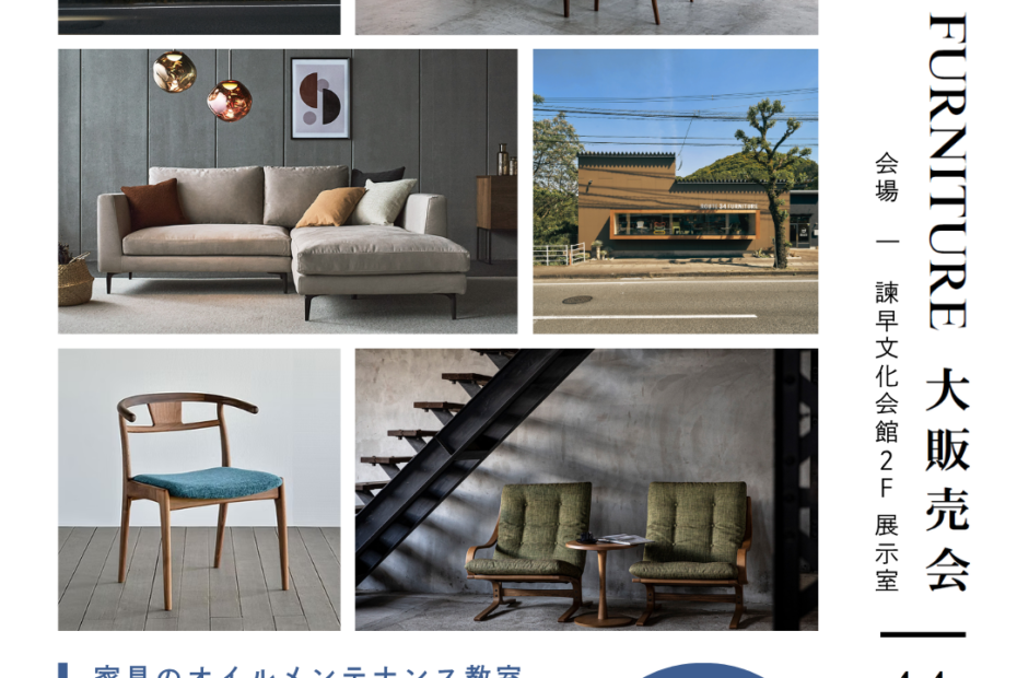 4月イベントその2 ROUTE34FURNITURE 大販売会ニュース2026年3月30日こんにちはROUTE34FURNITUREです。 4月は各地でイベント多いと思いますが、今月はROUTEも特別イベントがあります! 4月特別イベントのお知らせ🏠 【建築家相談会 in 諫早文化会館】 … 続きを読む »4月イベントその2 ROUTE34FURNITURE 大販売会