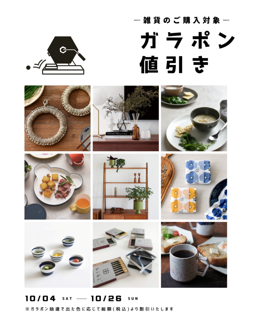 雑貨ご購入対象のガラポン値引きキャンペーン