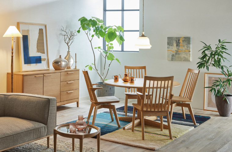 日常使いの家具として、生活空間に心地よさや潤いをもたらすトータルコーディネートができるのも魅力です。