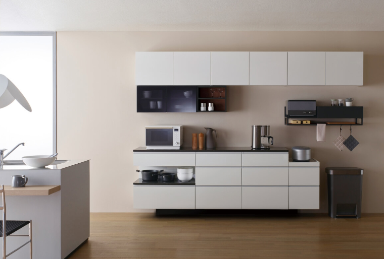 収納力にも優れており、リビングでは書類や日用品、ダイニングでは食器やカトラリー、